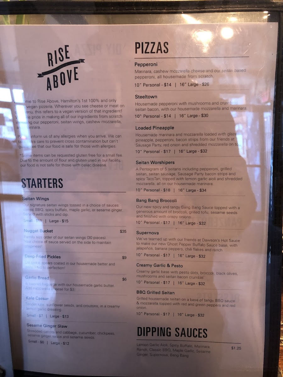 Welcome to Rise Above Pizza & Wings, a vibrant eatery located at 274 James St N, Hamilton, ON. This unique spot specializes in mouthwatering vegan options, allowing everyone to indulge without compromise. The menu features a delectable array of pizzas, wings, and sandwiches, all made with fresh, scratch-cooked ingredients. Customers rave about the seitan wings and the delightfully inventive pizzas, including the Killer Pineapple Pizza from Outer Space and the rich Bacon Triple Cheese Burger Pizza.